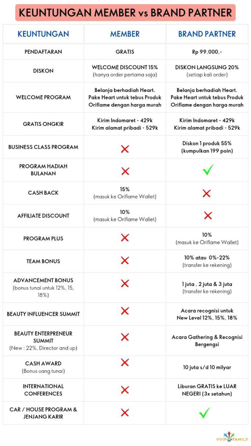 Dibawah ini adalah perbedaan keuntungan Konsumen Terdaftar (Member) & Brand Partner.